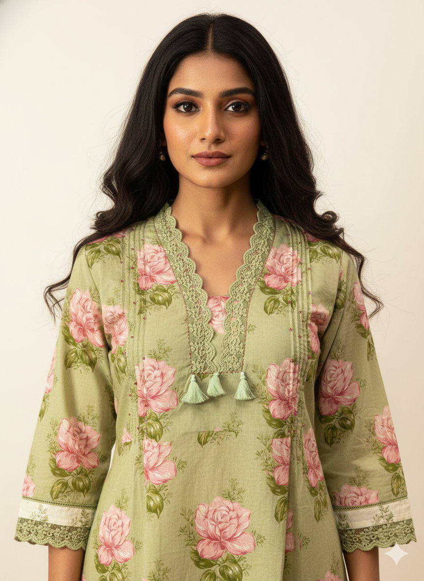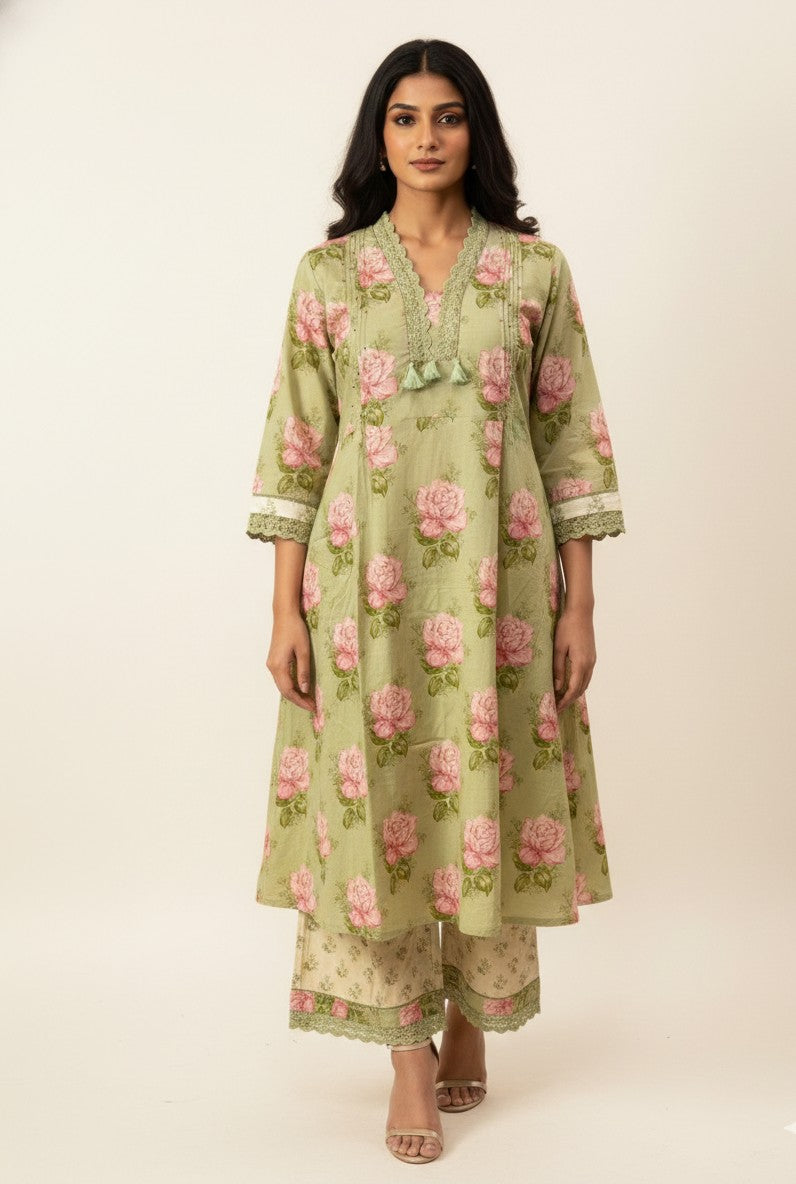 Pure Cotton A Line Two Piece Pant Set PS0155