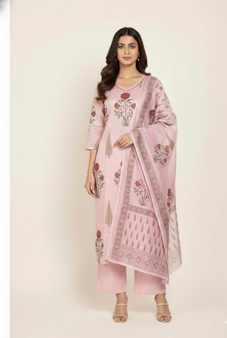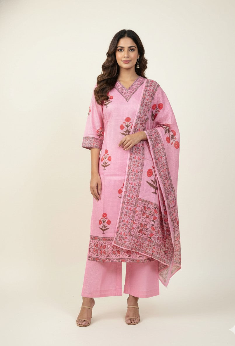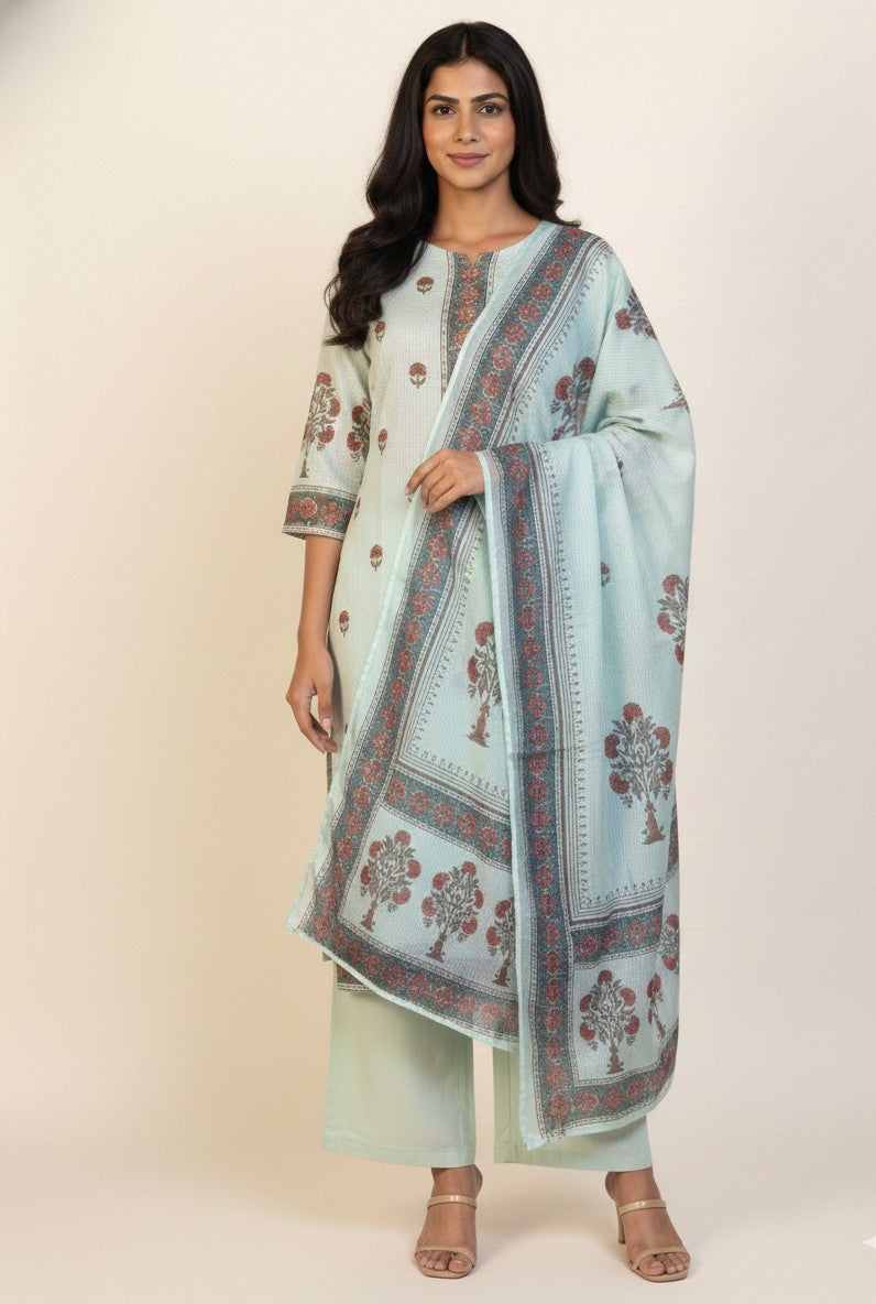 Pure Cotton Three Piece Dupatta Set