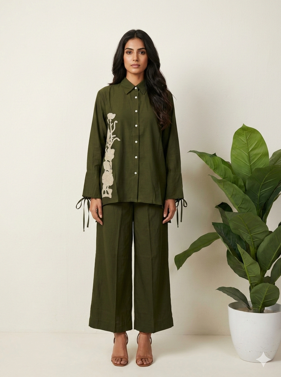 Pure Muslin Two Piece Co Ord Set With Embroidery