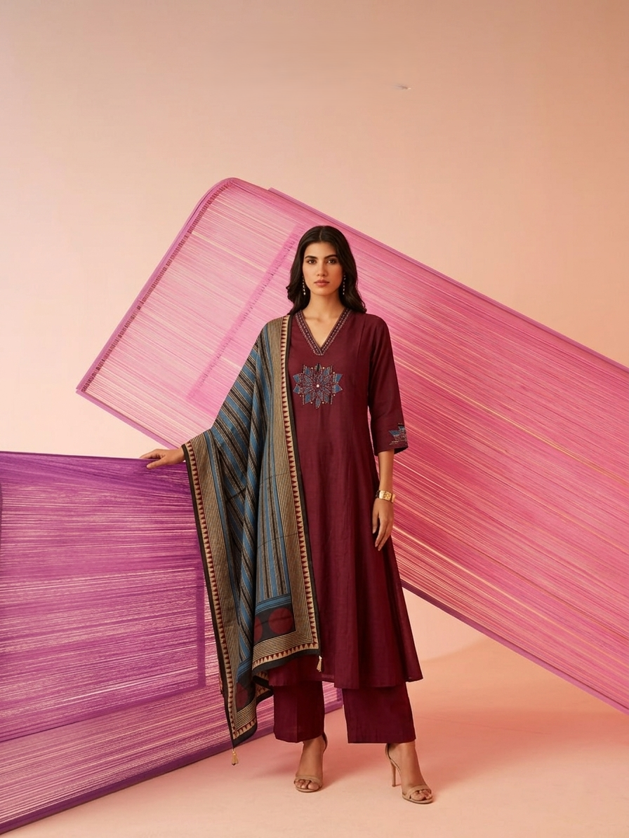 Pure chanderi Three Piece Dupatta Set CS001