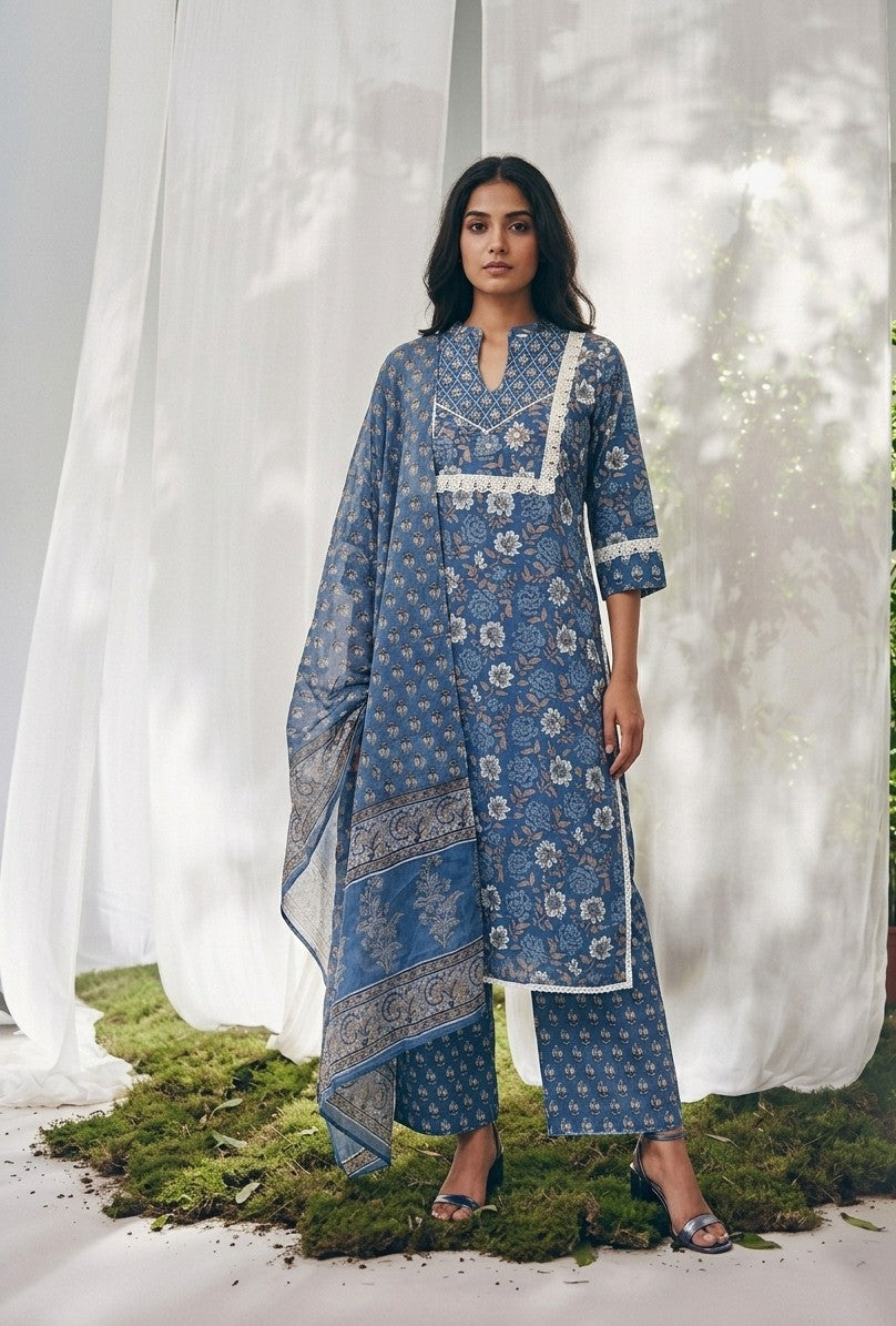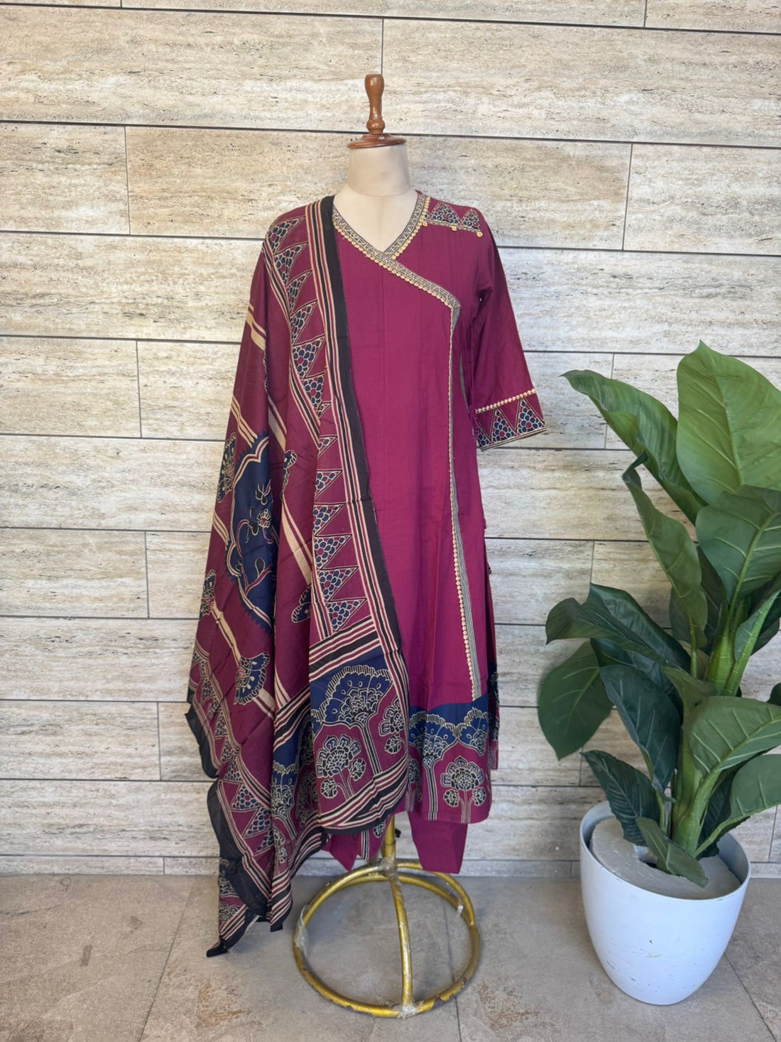 Pure Cotton A Line Three Piece Dupatta Set CS0210