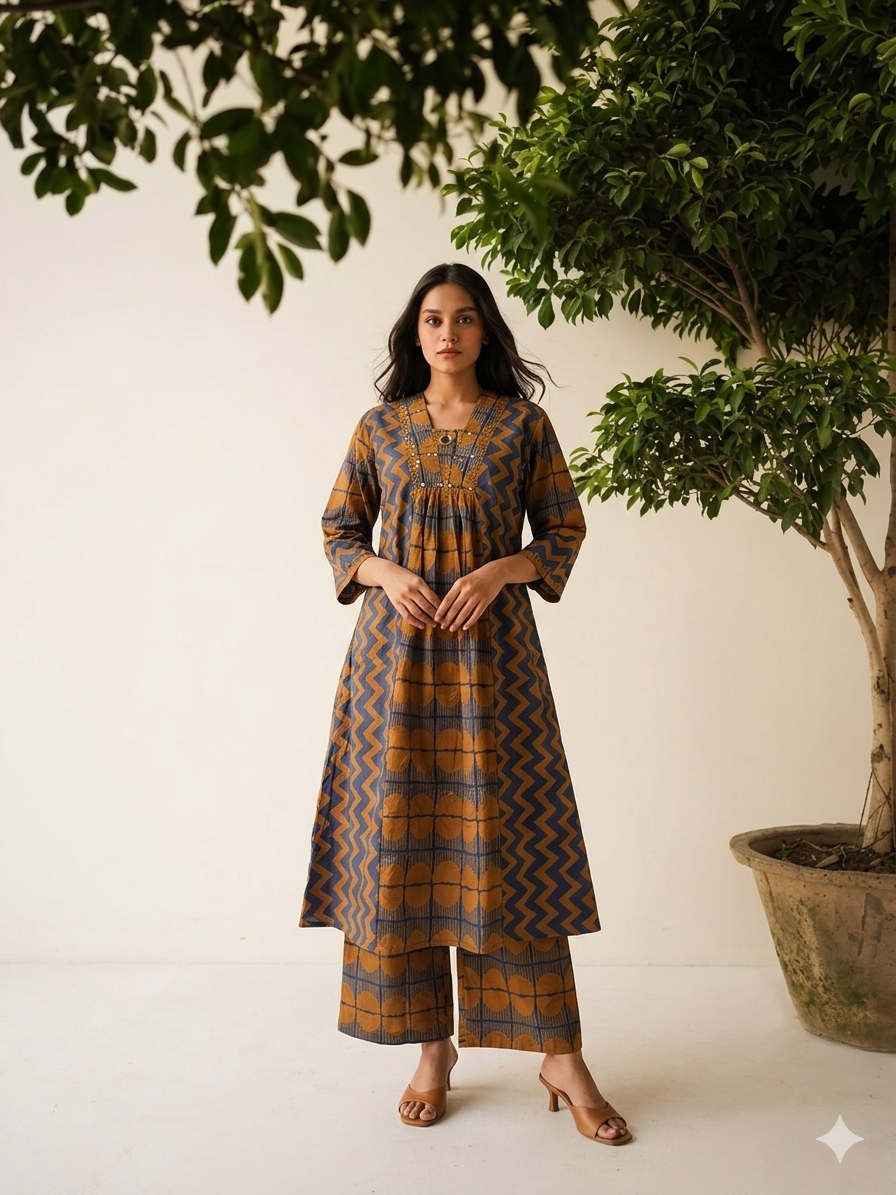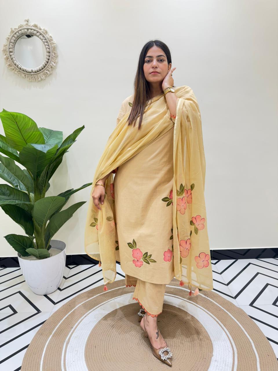 Slub Cotton Brush Print With Inner Dupatta Set CS0174