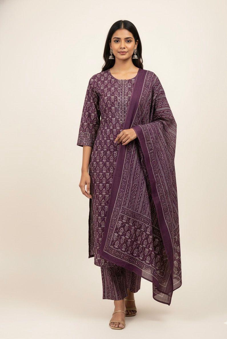 Pure Cotton A Line Three Piece Dupatta Set CS0288