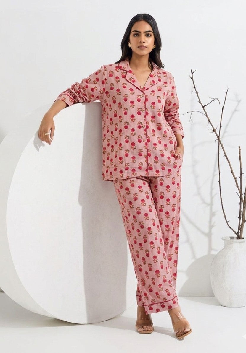 Pure cotton Floral Printed Night Suits Set NS005