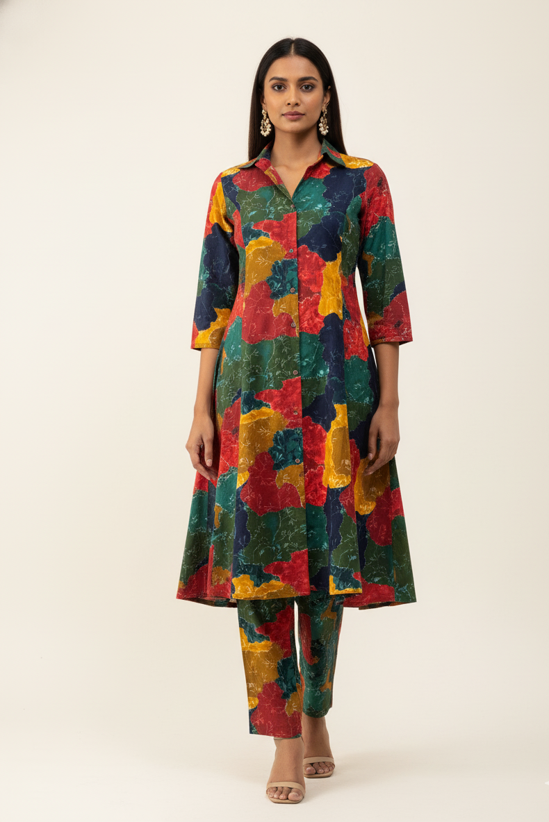 Abstract Print Pure Cotton Long Co Ord Collection FL0122