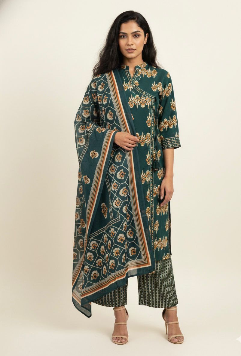 Three Piece Pure Cotton Angrakha Style Dupatta Set ANG004