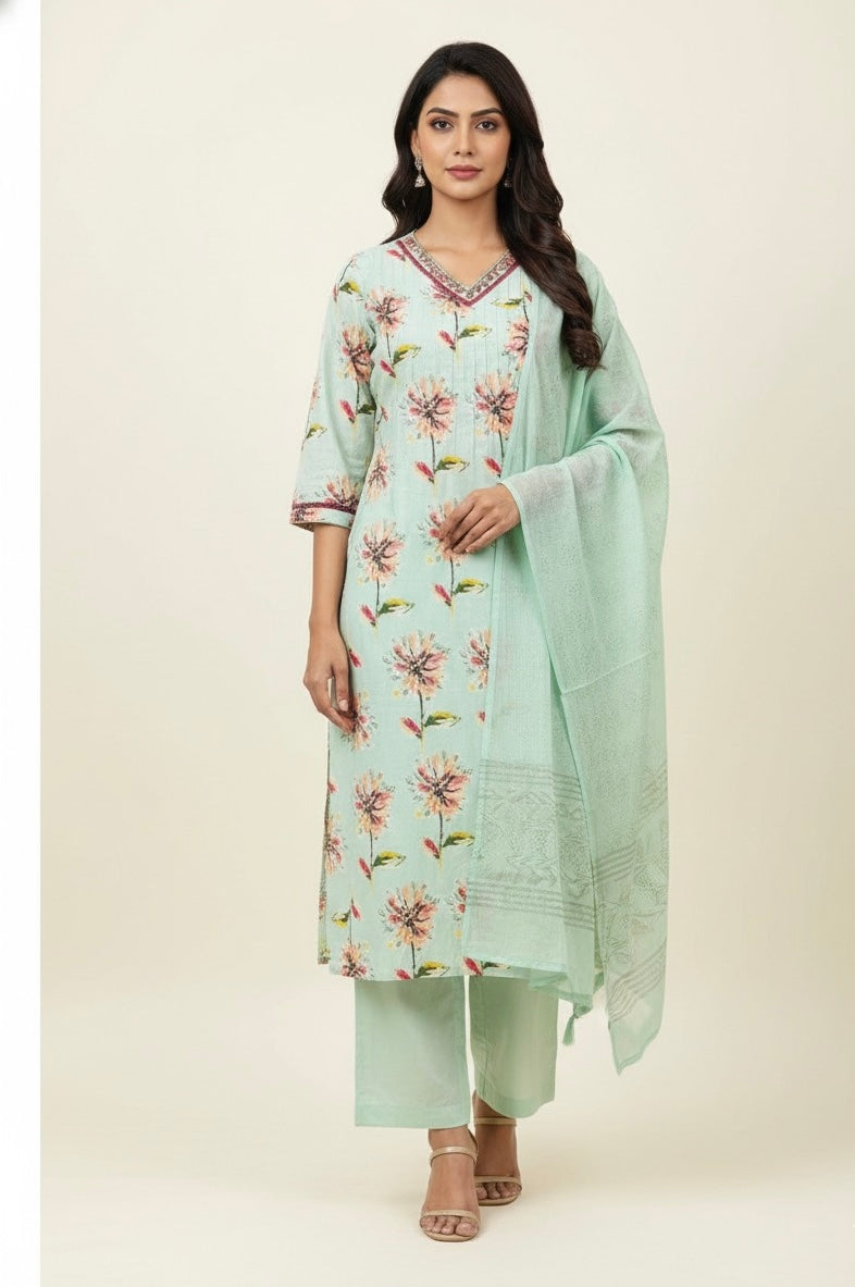 Pure Cotton Floral Print Three Piece Dupatta Set CS0209