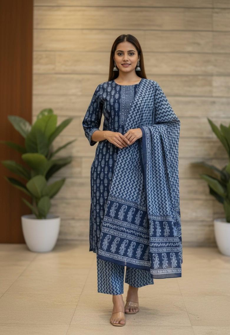 Pure cotton ajrak print Dupatta set