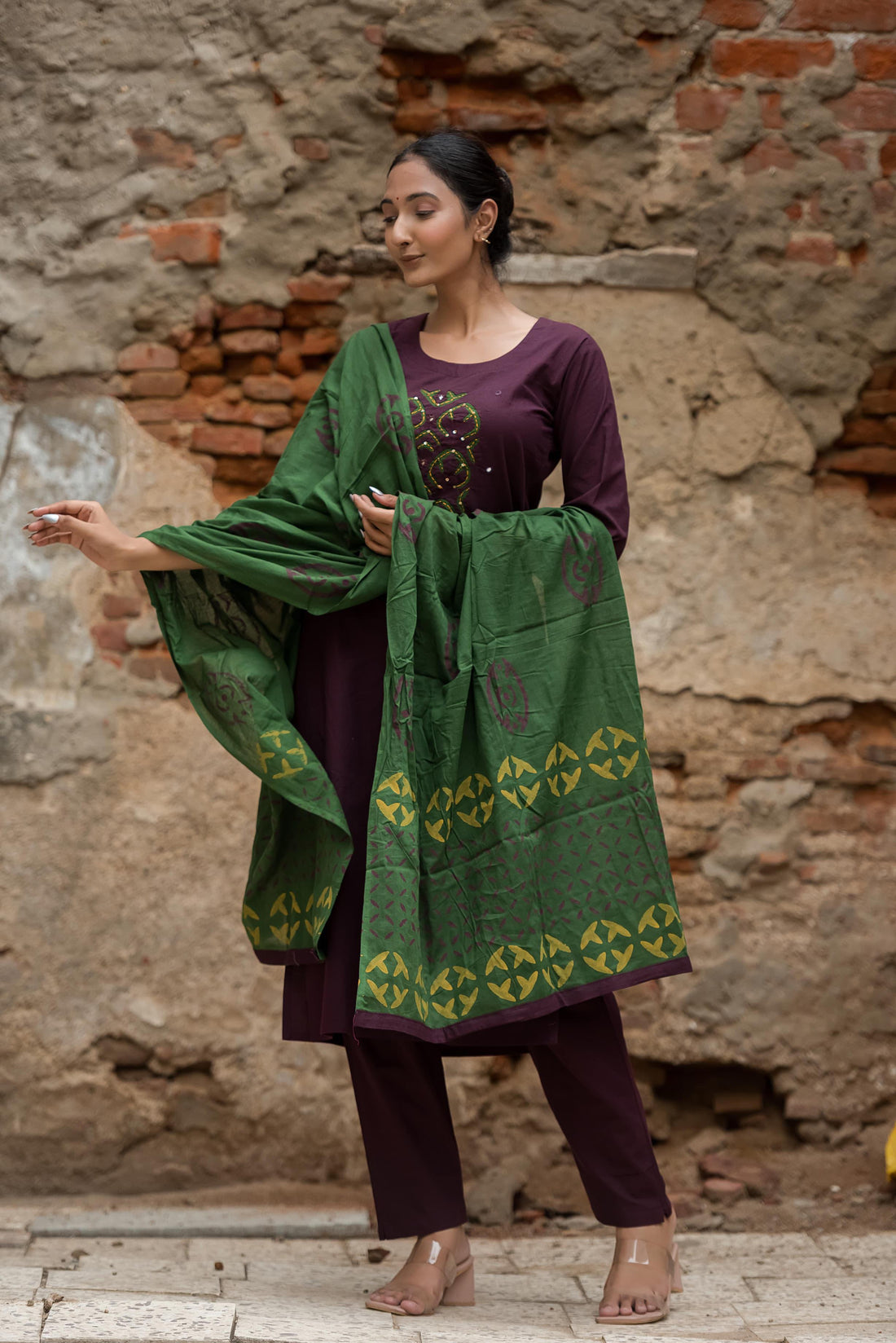 Pure Cotton Dupatta Set With Embroidery Work CS071