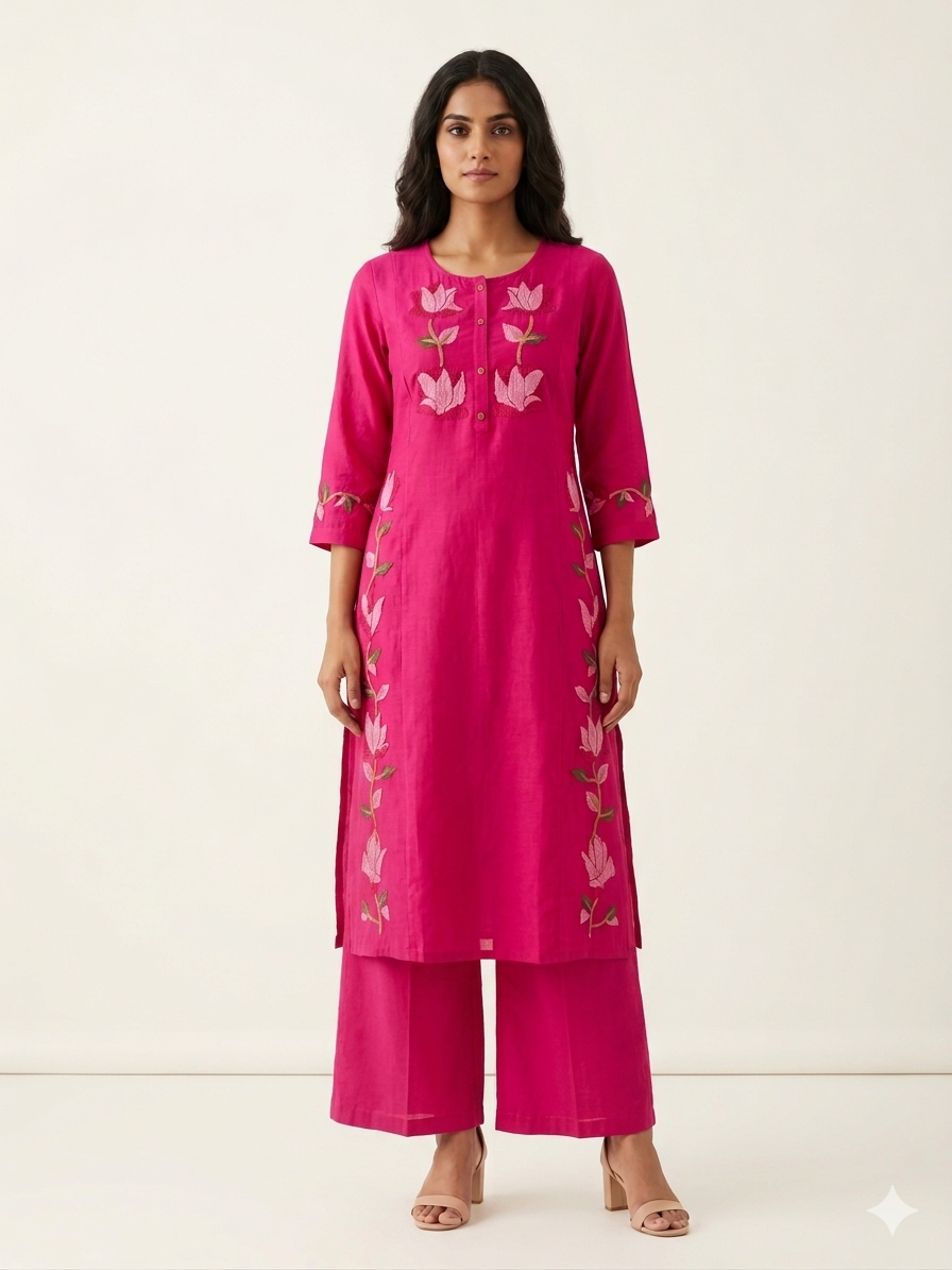 Pure Muslin Straight Two Piece Pant Set With Plazzo MPS009