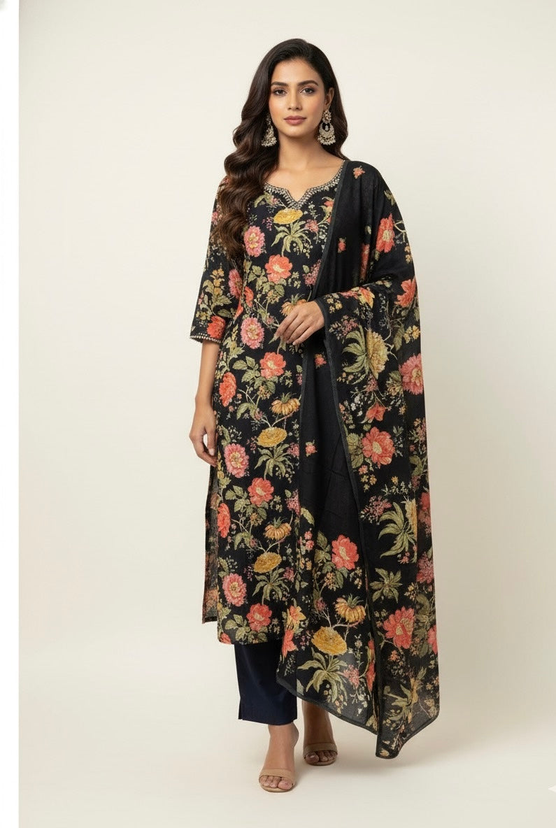 Festival Wear Pure Muslin Floral Print Dupatta Set FW013