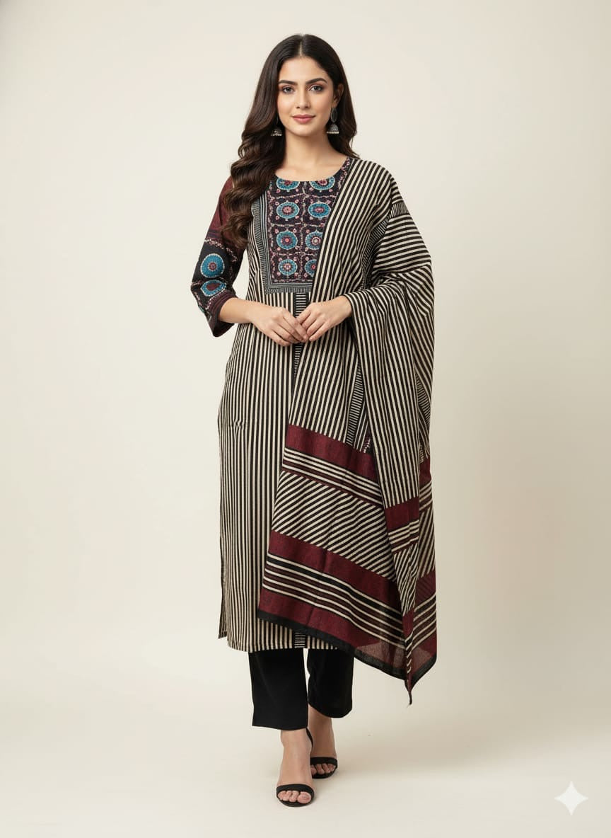 Festival Wear Pure Muslin Three Piece Dupatta Set LC0157