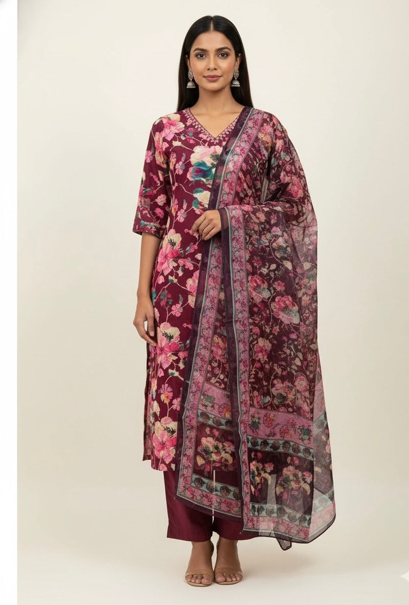 Festival Wear Pure Muslin Floral Print Dupatta Set FW014