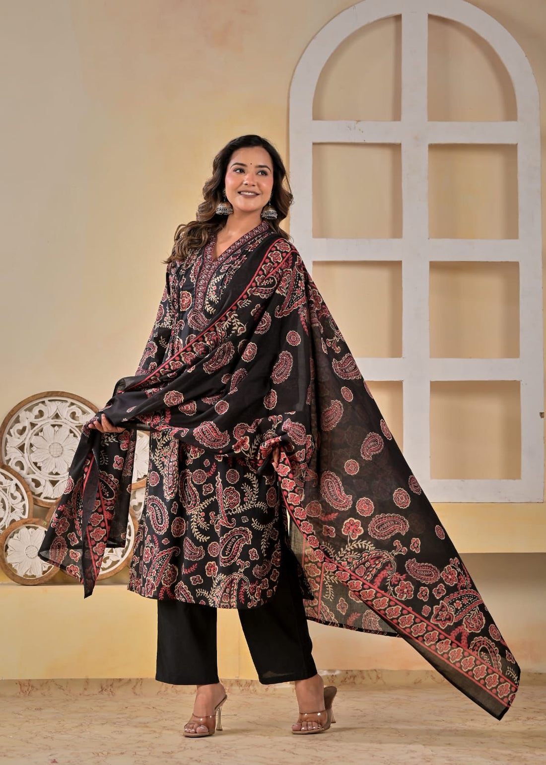 Pure Cotton A Line Three Piece Dupatta Set With Palazzo CS0333
