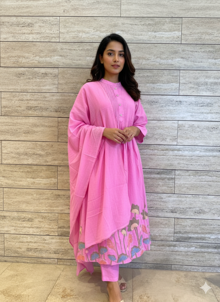 Pure Mul Cotton With Inner A Line Dupatta Set MC011