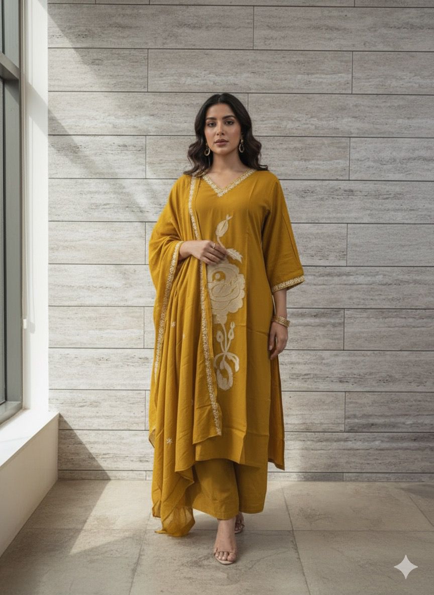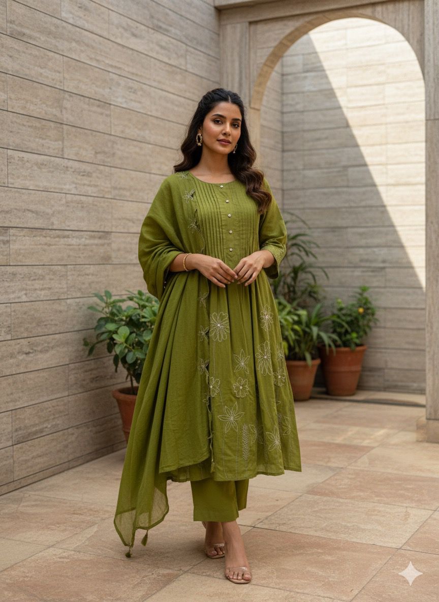 Pure Cotton A Line Dupatta Set With Embroidery Work CS0100