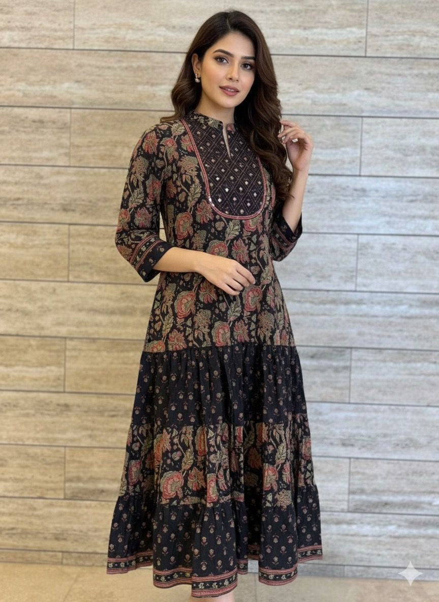 Floor length maxi gowns in pure Cotton with full length sleeves and a very beautiful...