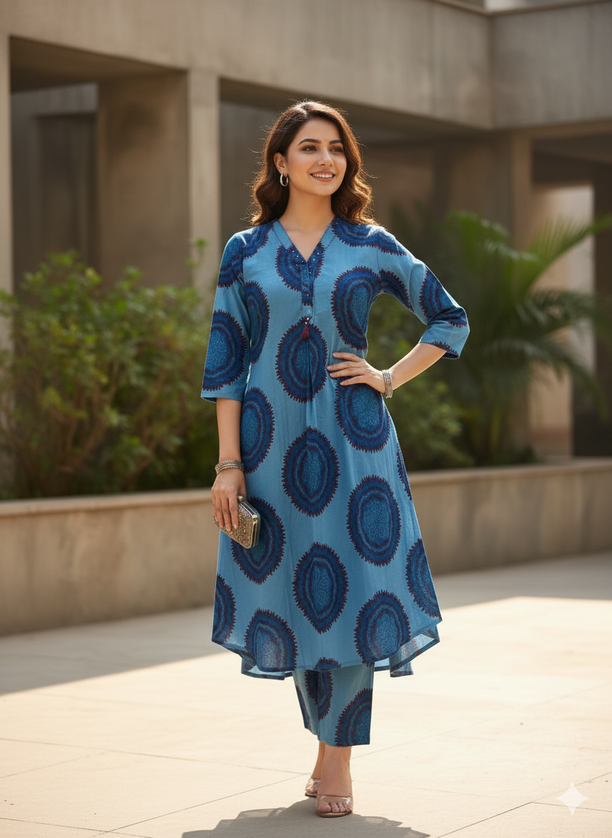 Princess Cut Two Piece Printed Cotton Pant Set PS002