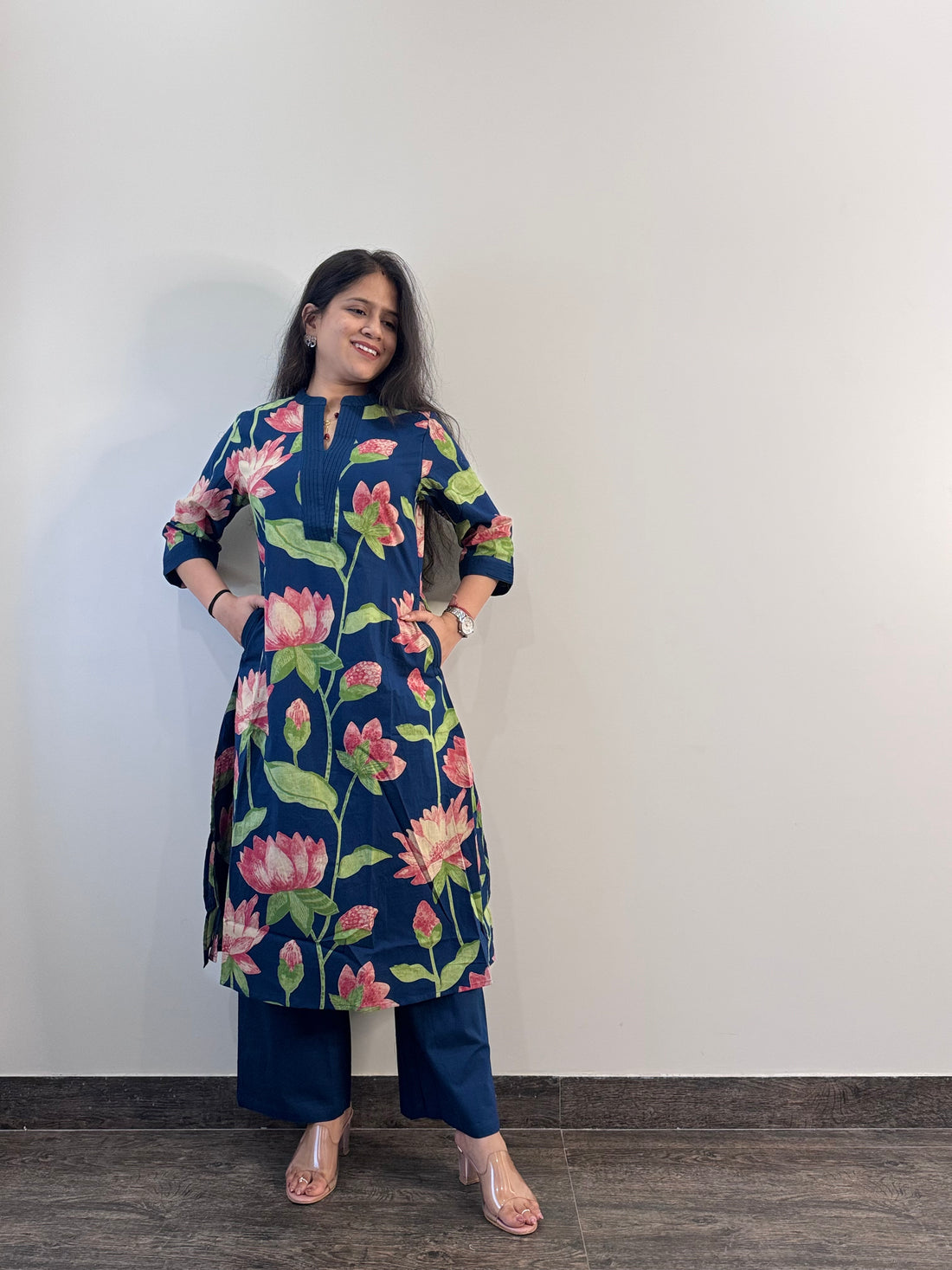 Pure Cotton Floral Print A Line Two Piece Pant Set PS070