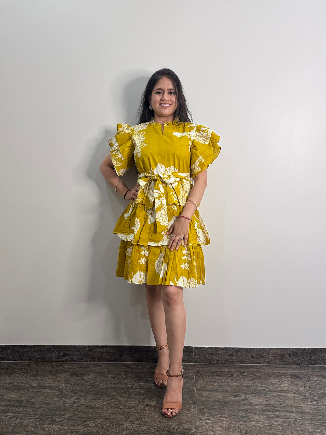 Short length tier dress in Bird and Flower print materie based on pure Cotton with...