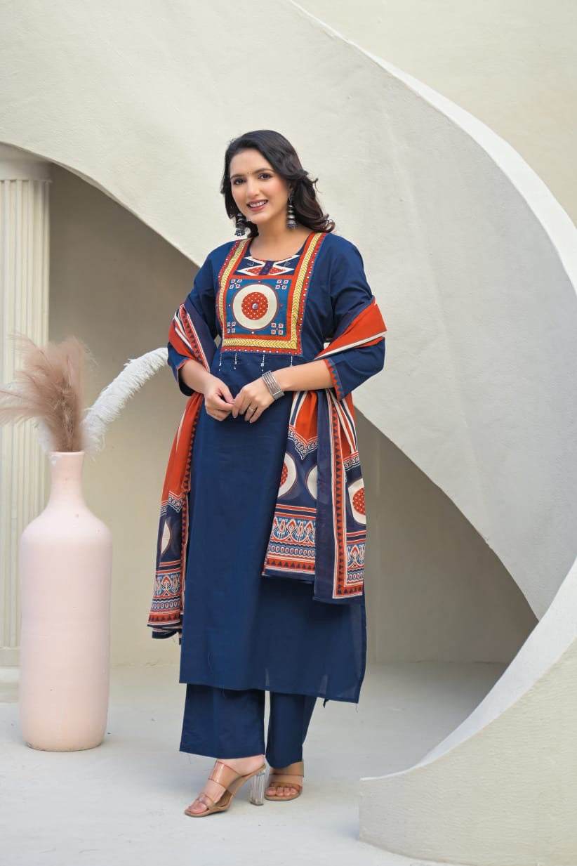 Pure Cotton A Line Dupatta Set With Embroidery With Heavy Applique Work Dupatta Set CS0142