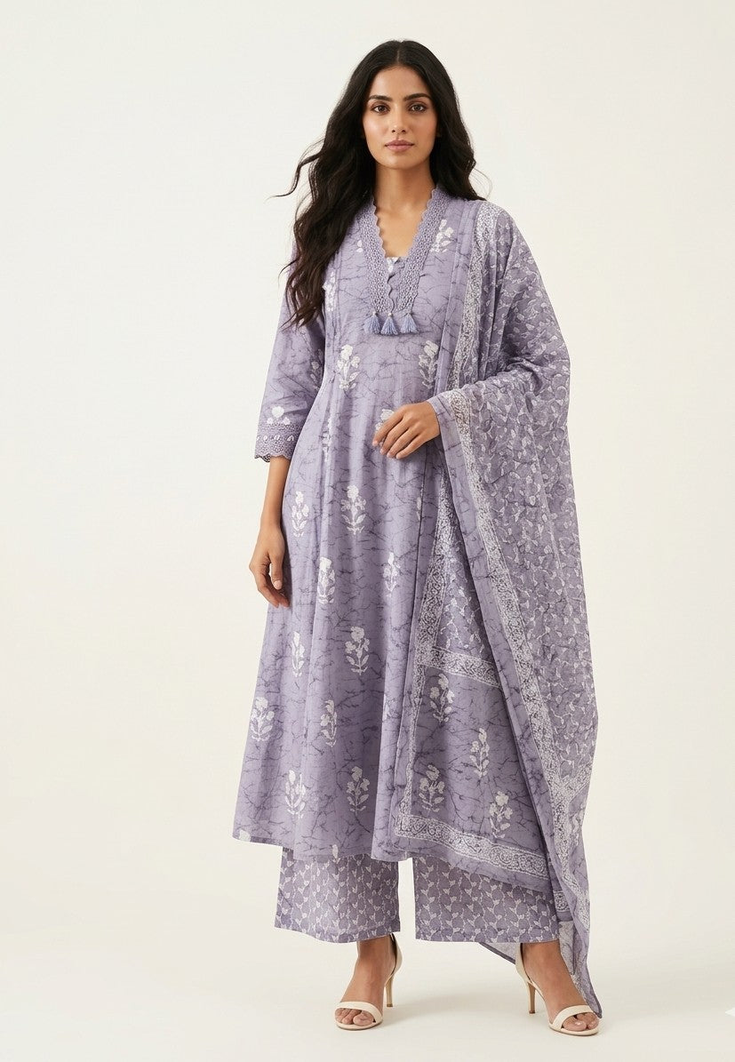 Pure Cotton A Line Baatik Print Dupatta Set CS0277