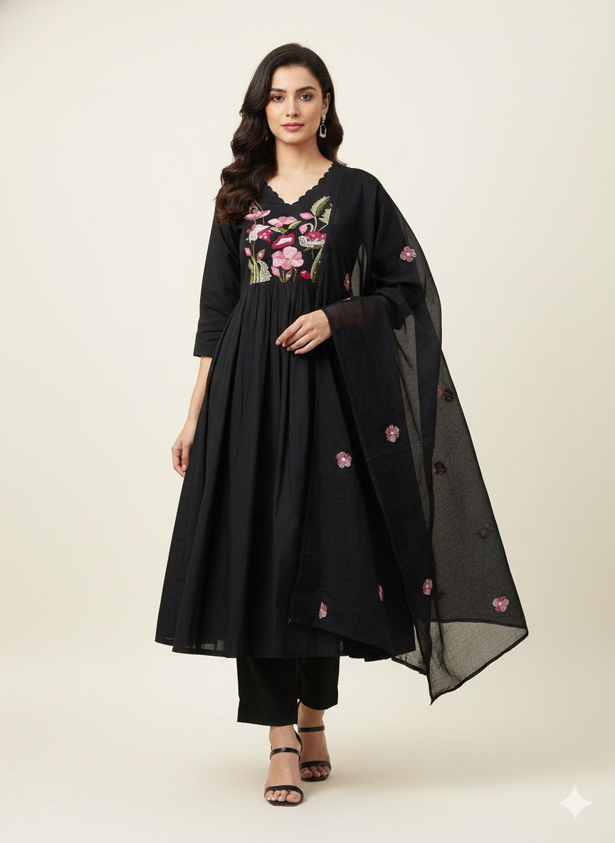 Premium Cotton A-Line Anarkali Floral Print Dupatta Set CS099