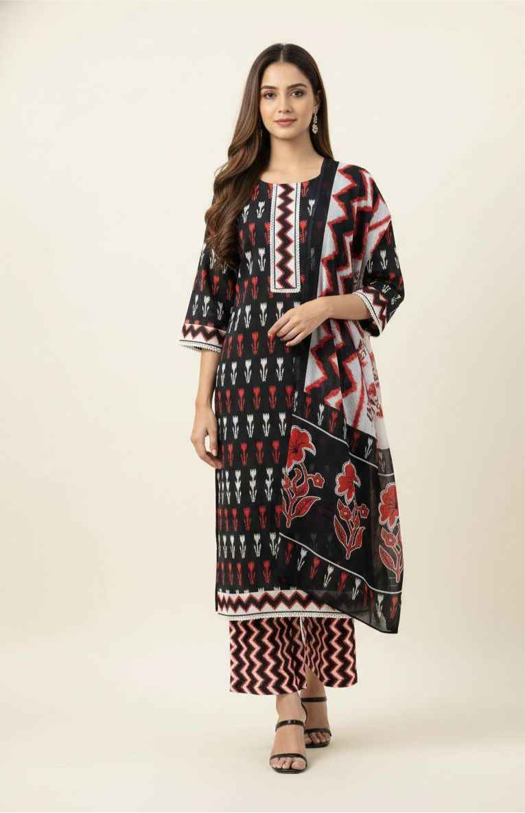 Pure Cotton Three Piece Dupatta Set With Salwar & Lace Work