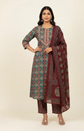 Ajrakh Print A Line Cotton Dupatta Set