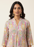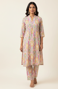 Two piece tropical print Cotton Co Ord sets in summer pastel color theme.