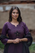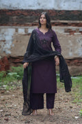 Appliqué Work Pure Cotton Dupatta Set In Deep Purple CS063