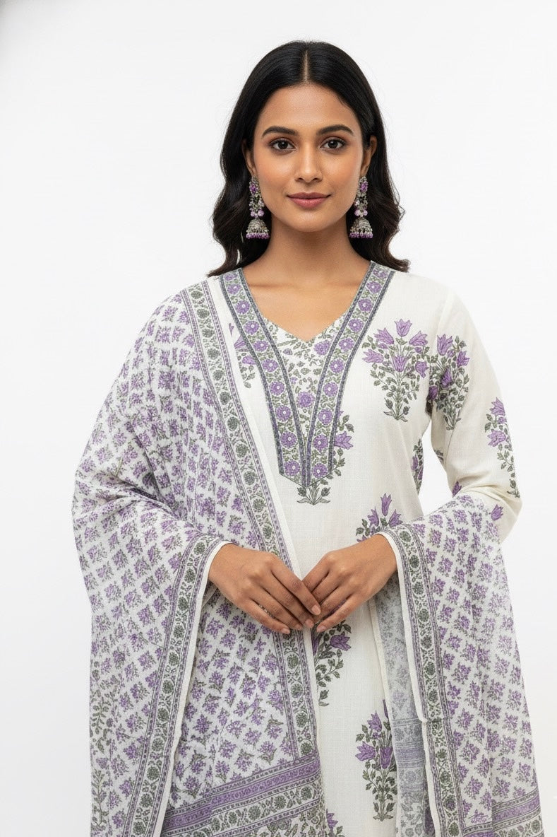 Buta Hand Block Pure Cotton Dupatta Set FL031