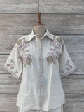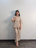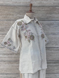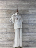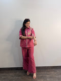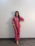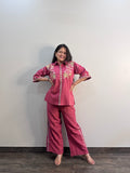 Floral embroidered two piece pure Cotton flex Co Ord Set in light pastel colors. Not your normal co Ord it’s as stylish as it can be. Comes with a solid base straight pant and has both side embroidery work on its shirt.