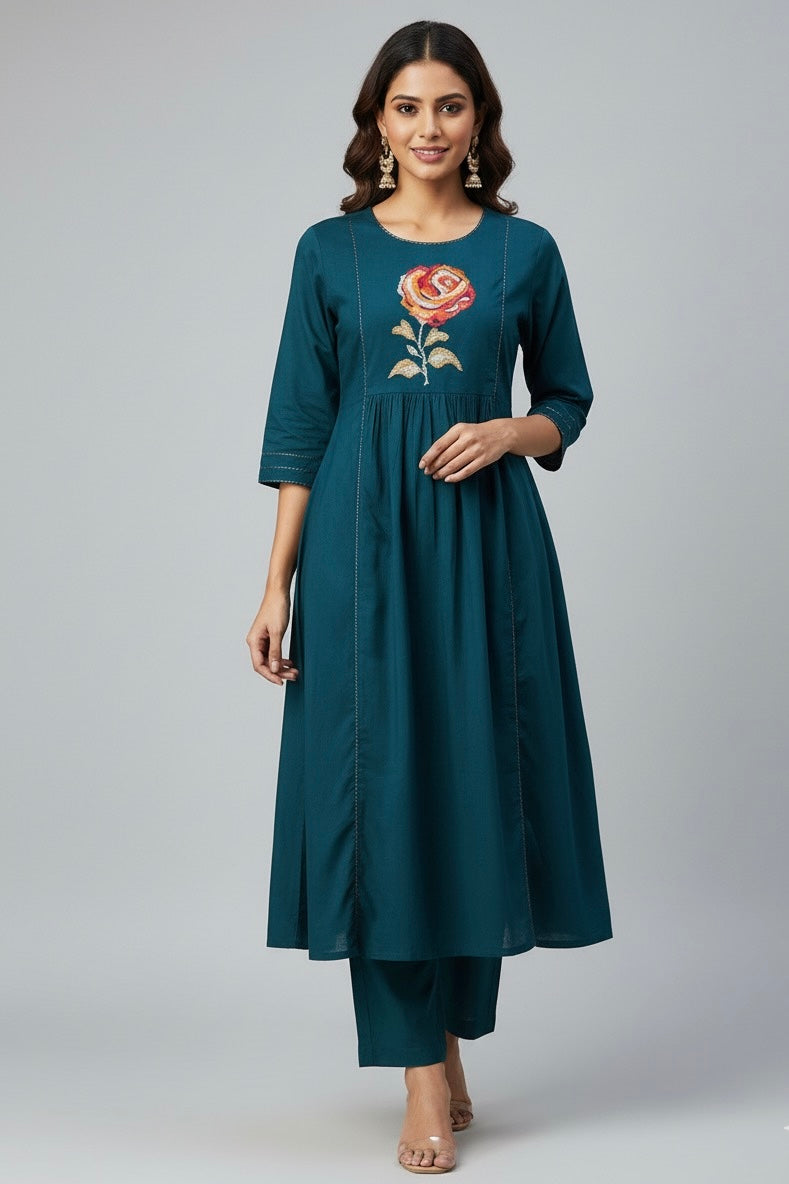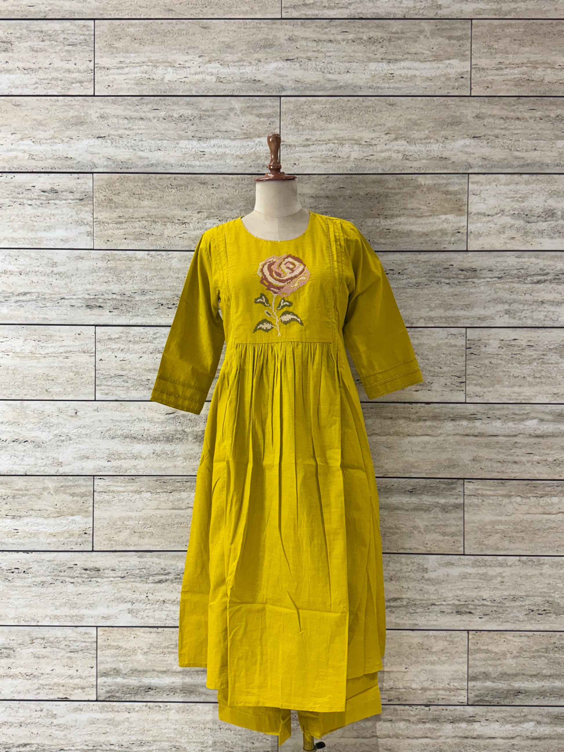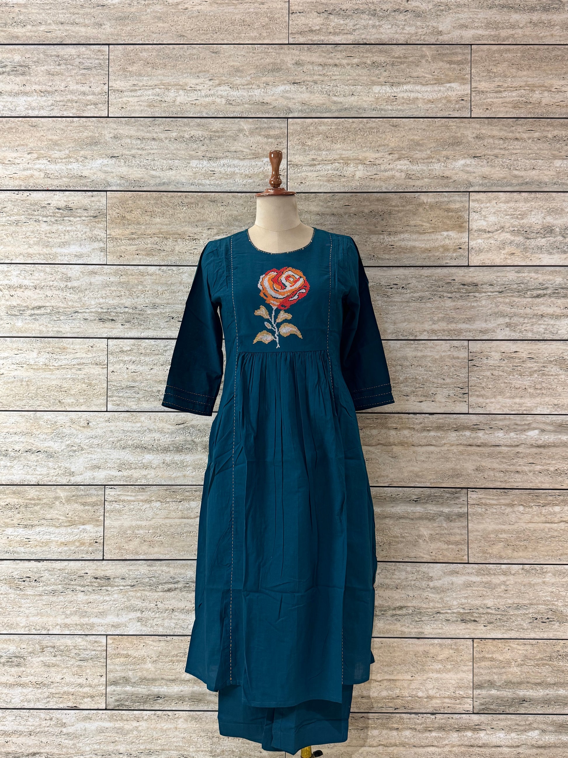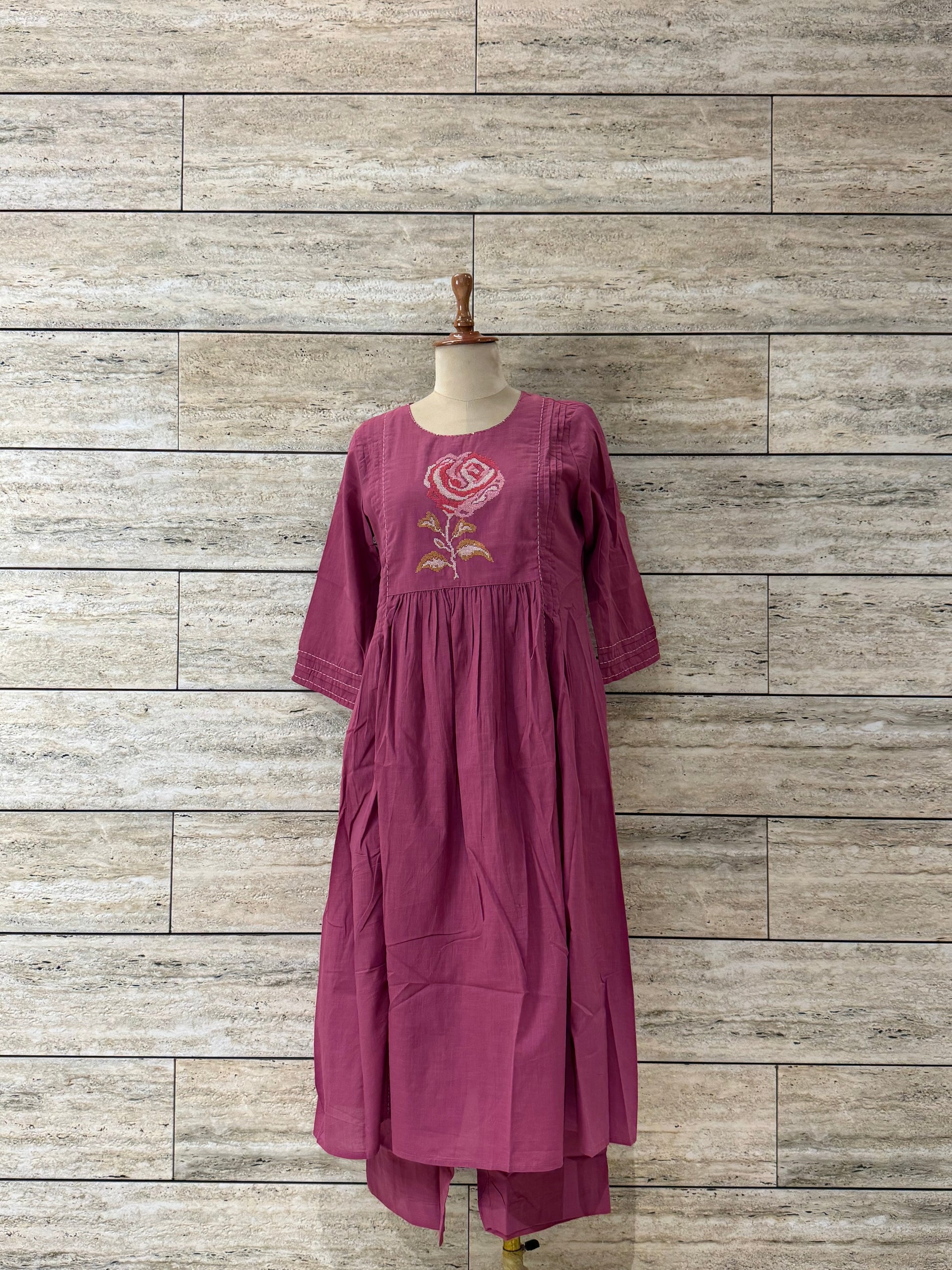 Pure Cotton Two Piece Pant Set With Embroidery FL0108
