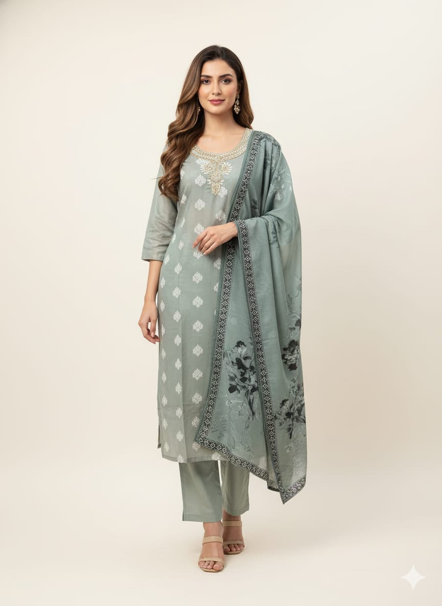Festival Wear Pure Chanderi Silk Three Piece Dupatta Set LC0167