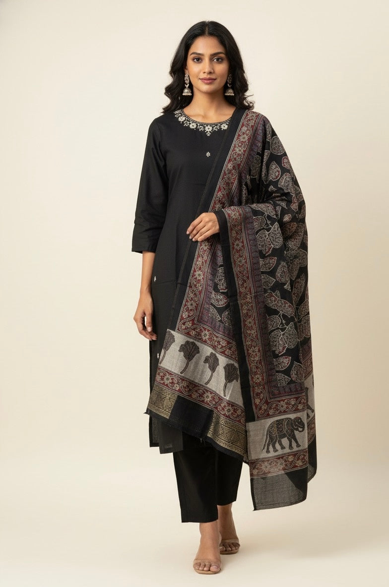 Festival Wear Pure Muslin Dupatta Set With Embroidery FW017