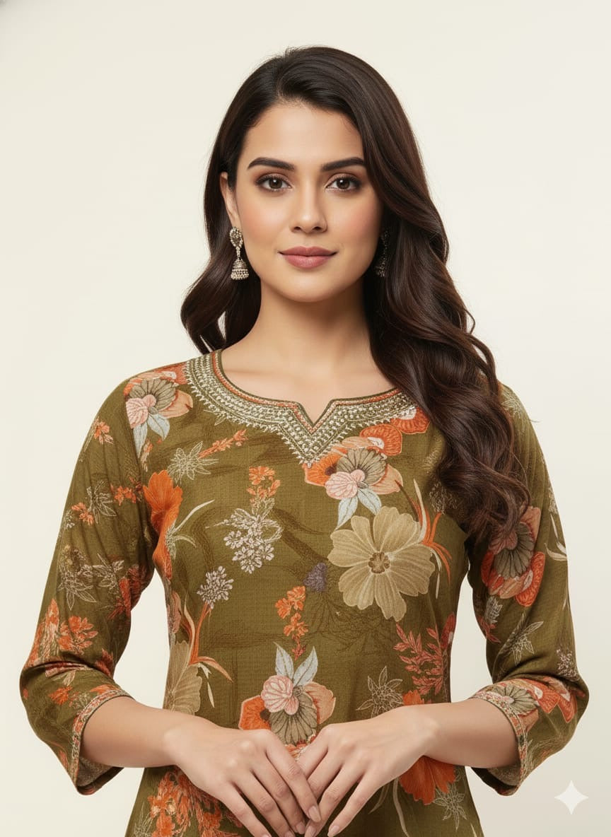 Festival Wear Pure Muslin Floral Print Dupatta Set LC0123