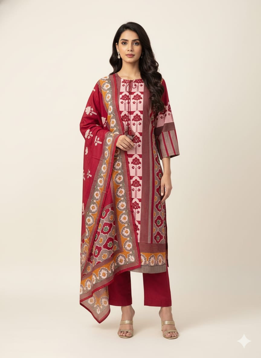 Festival Wear Pure Muslin Three Piece Dupatta Set LC0159