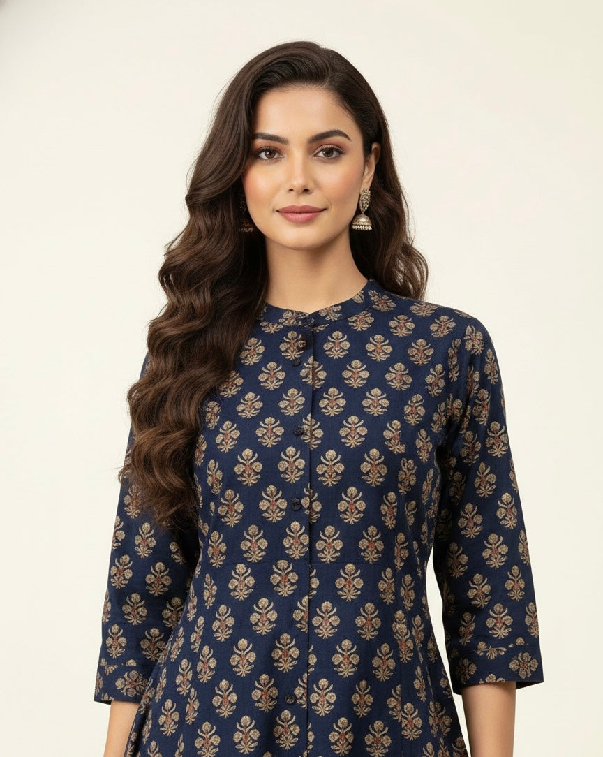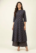 Floral Print Deep Blue Two Piece Pant Set LC074