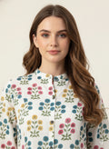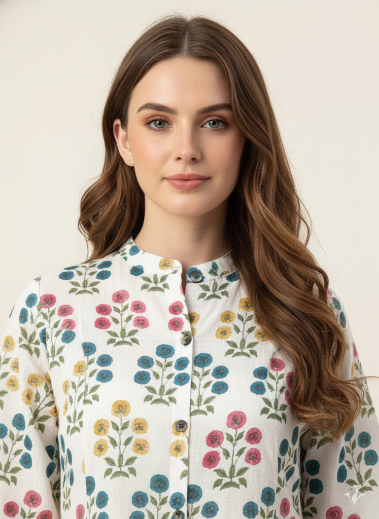 A line only kurta in pure Cotton fabric in hand block print. Your new office wear going wardrobe collection which is easy to wear and super stylish. Its mandarin collar gives you a very formal and elegant look and the overall fall makes you feel comfortable for the entire day.