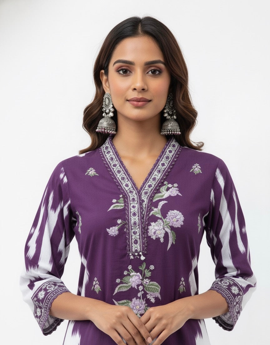 Ikkat Print Loose Fit Pure Cotton Dupatta Set FL027