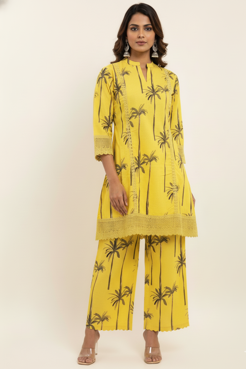 Loom Style Co Ord Sets in pure Cotton with lace work - FL0145