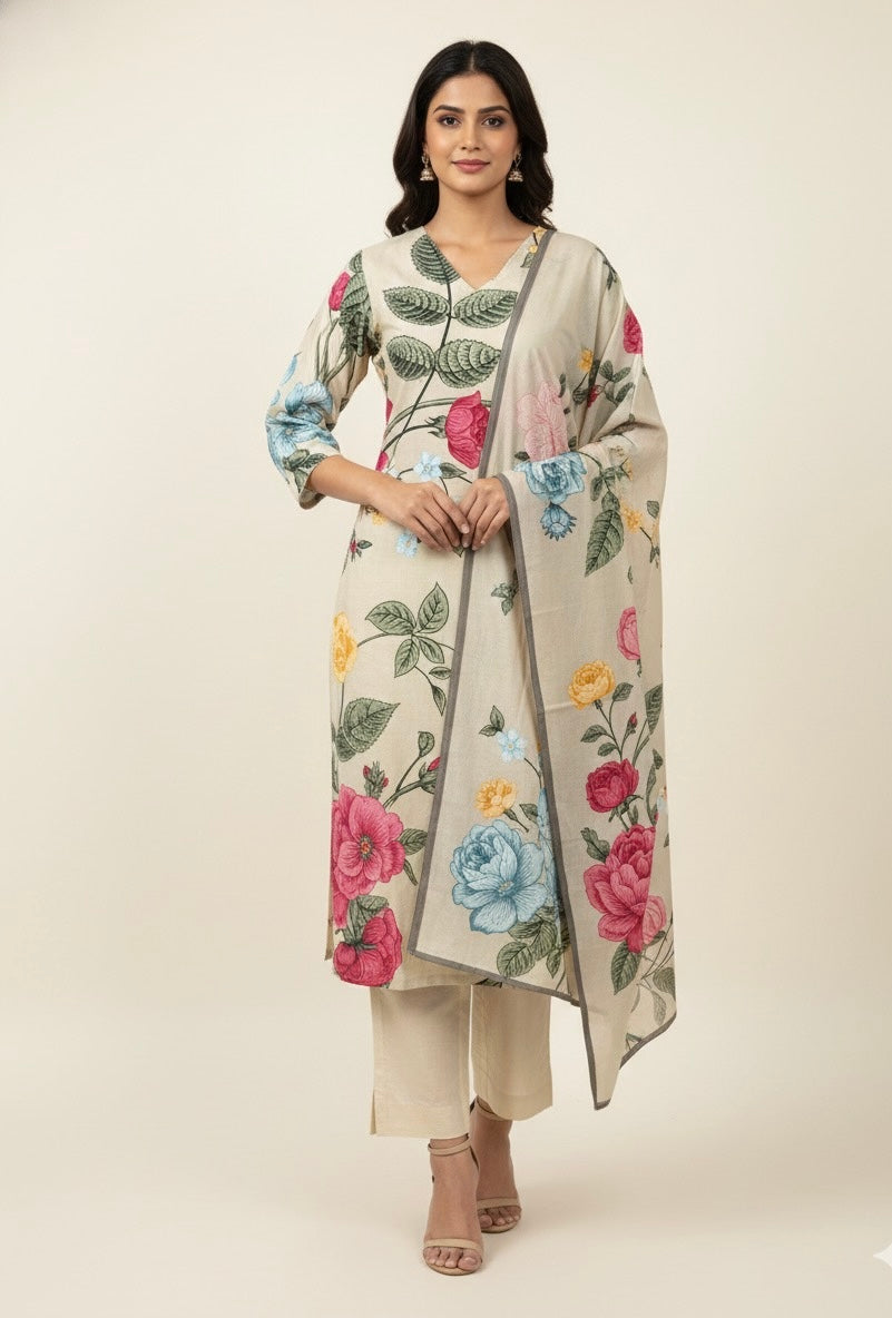 Mint Green Pure Cotton Digital Print Dupatta Set FL038