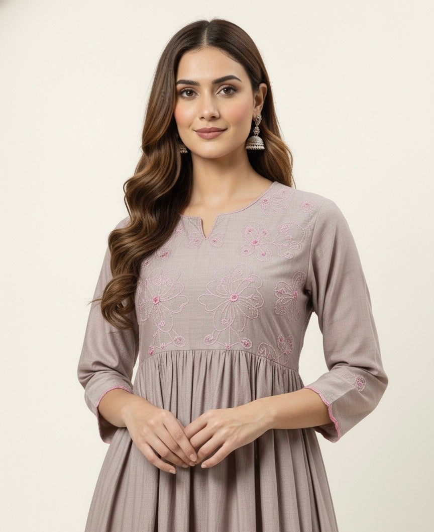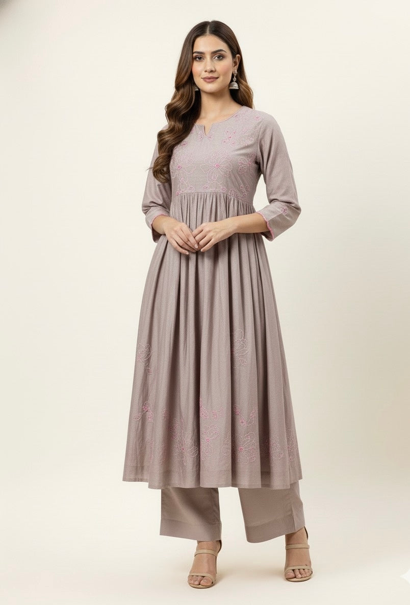 Pure Mul Chanderi Anarkali Dupatta Set With Embroidery Work ANK014