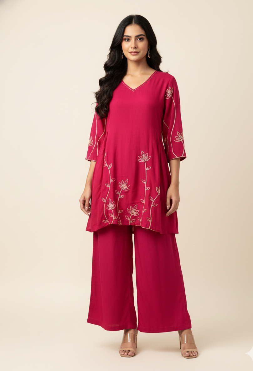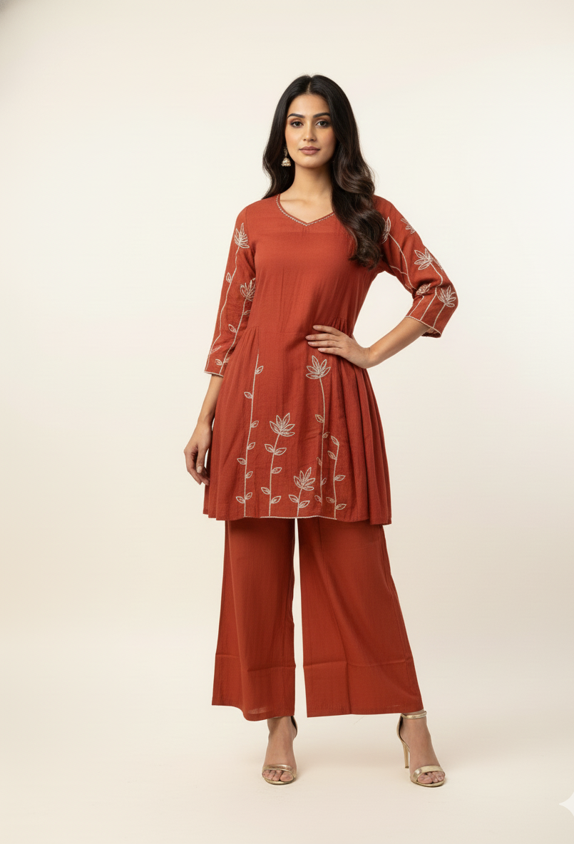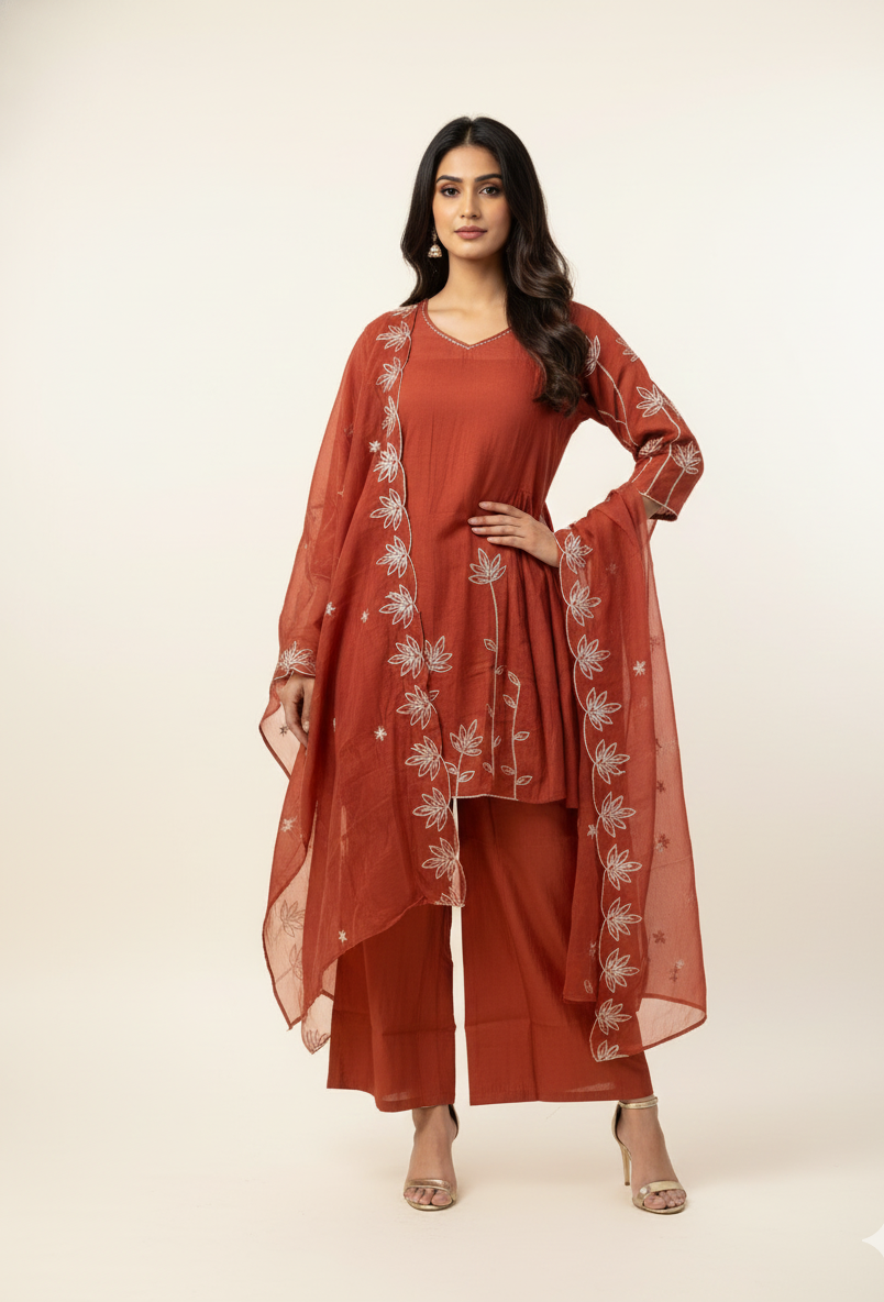 Mul Chanderi Paplum Style Festive Wear Dupatta Set MLC014