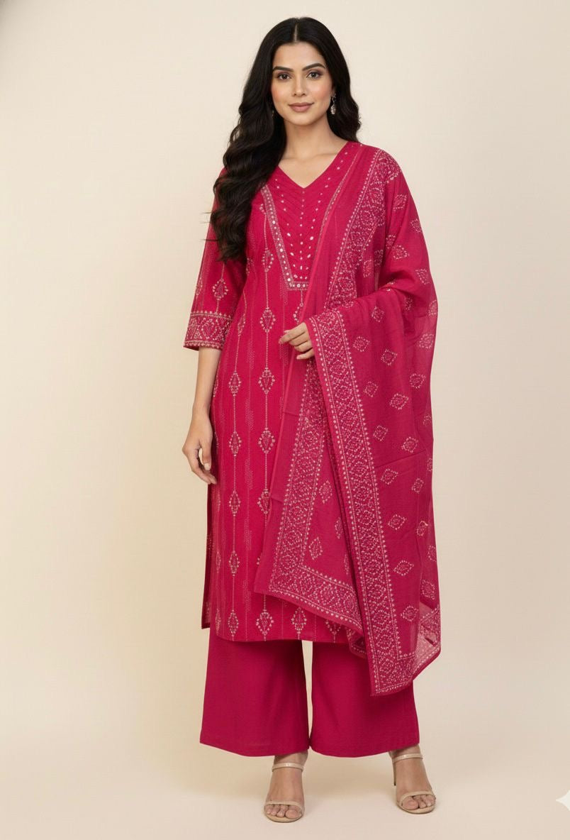 Premium Cotton A-Line Dupatta Set With Palazzo CS0145