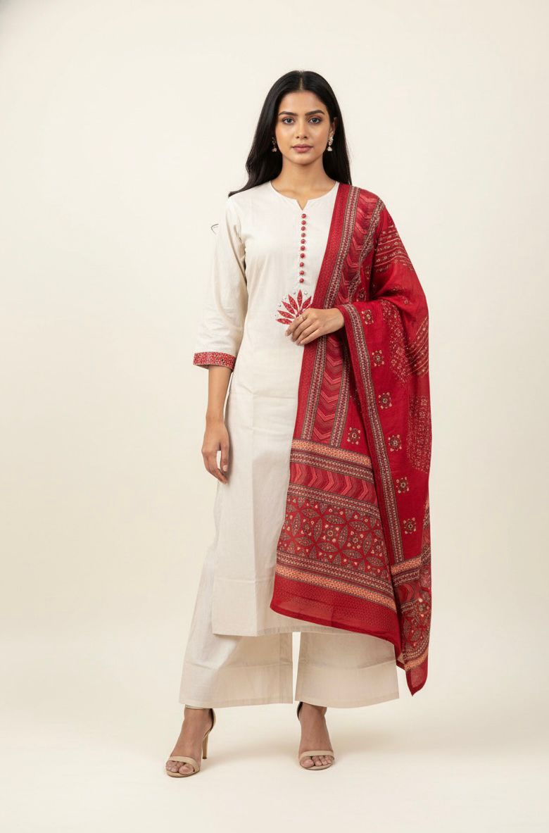 Premium Cotton A-Line Solid Beas With Printed Dupatta set