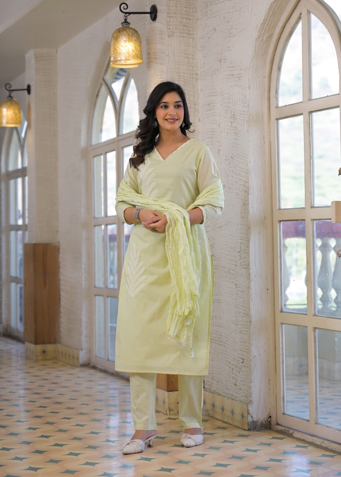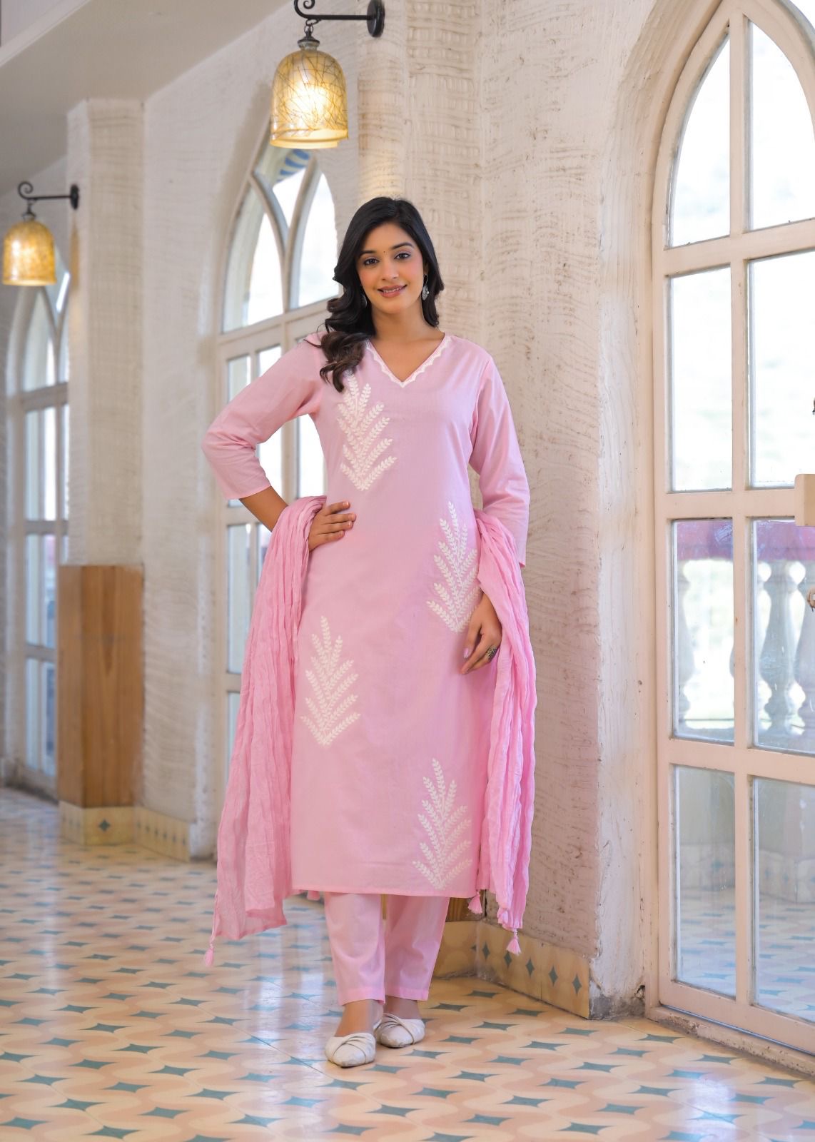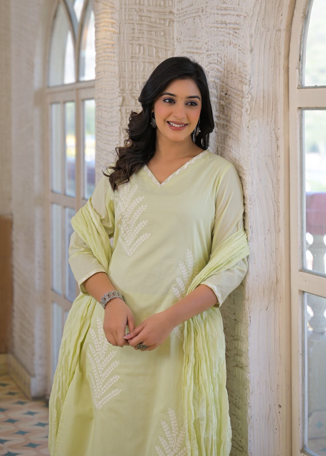 Premium cotton embroidery dupatta set with crushed dupatta CS0326