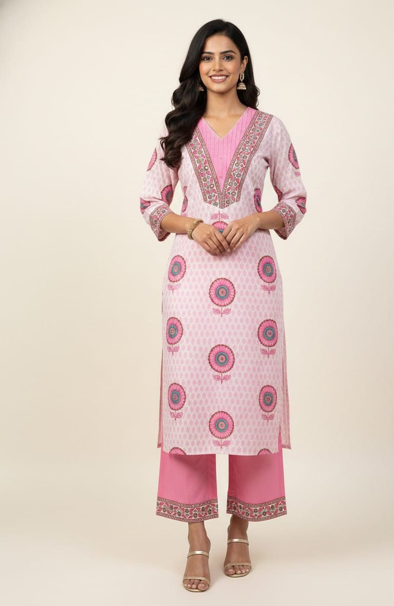 Premium Cotton Floral Print Dupatta Set With Embroidery CS0189