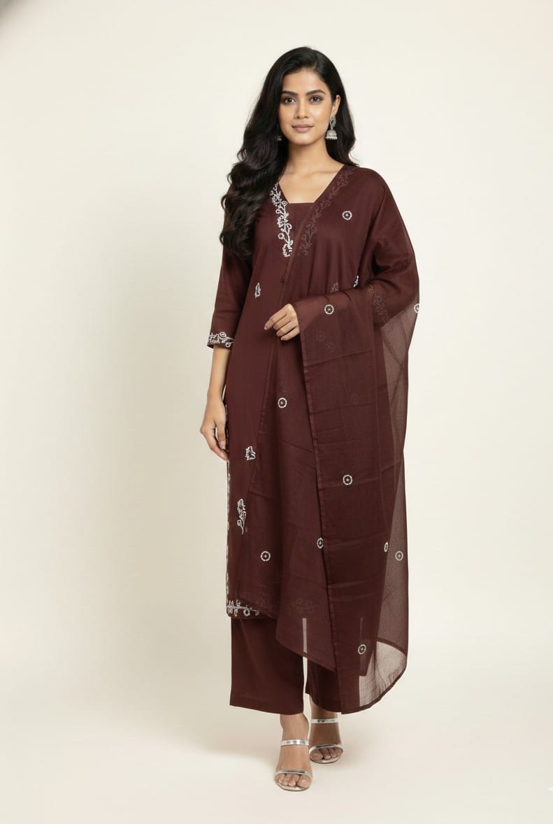 Premium Cotton Solid Base With Embroidery Dupatta Set CS0182